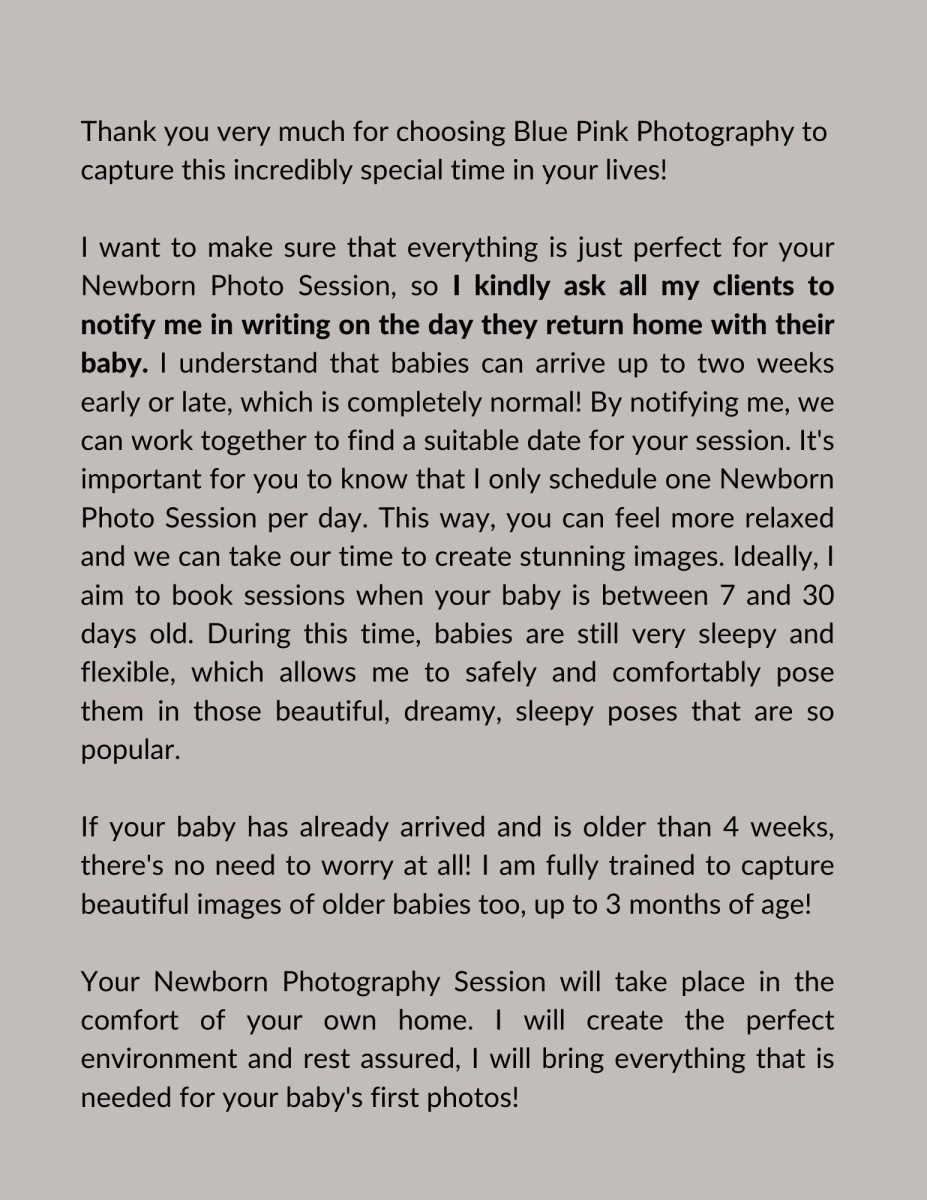 When you book a newborn photo session with me, you can expect a personalised, gentle and professional experience. I understand the delicacy of working with newborns and take every precaution to ensure their comfort and safety. 🌿