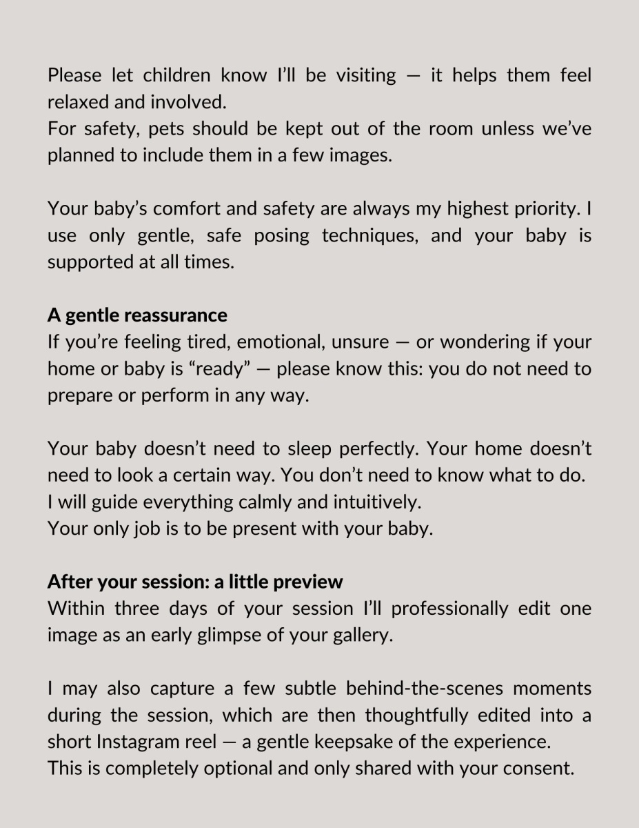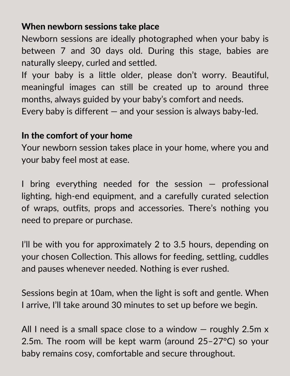 When you book a newborn photo session with me, you can expect a personalised, gentle and professional experience. I understand the delicacy of working with newborns and take every precaution to ensure their comfort and safety. 🌿