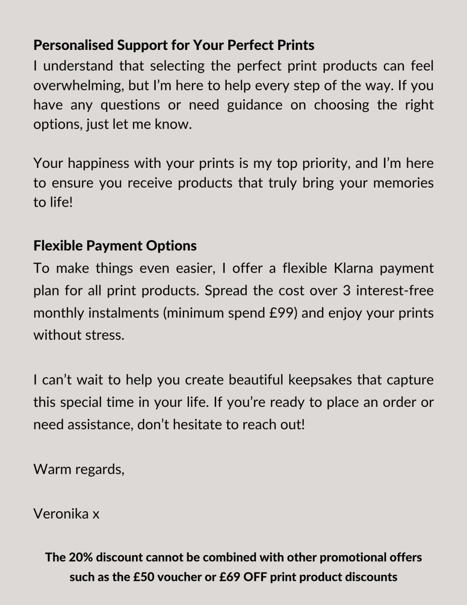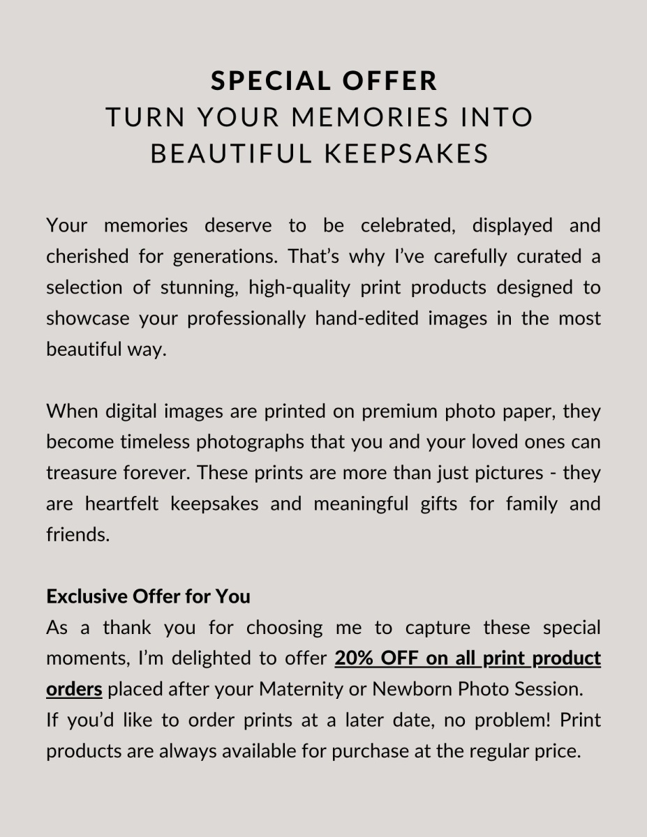 I'm excited to introduce my Print Products Catalogue, showcasing a range of beautiful options to bring your professionally edited digital files to life. 🌿