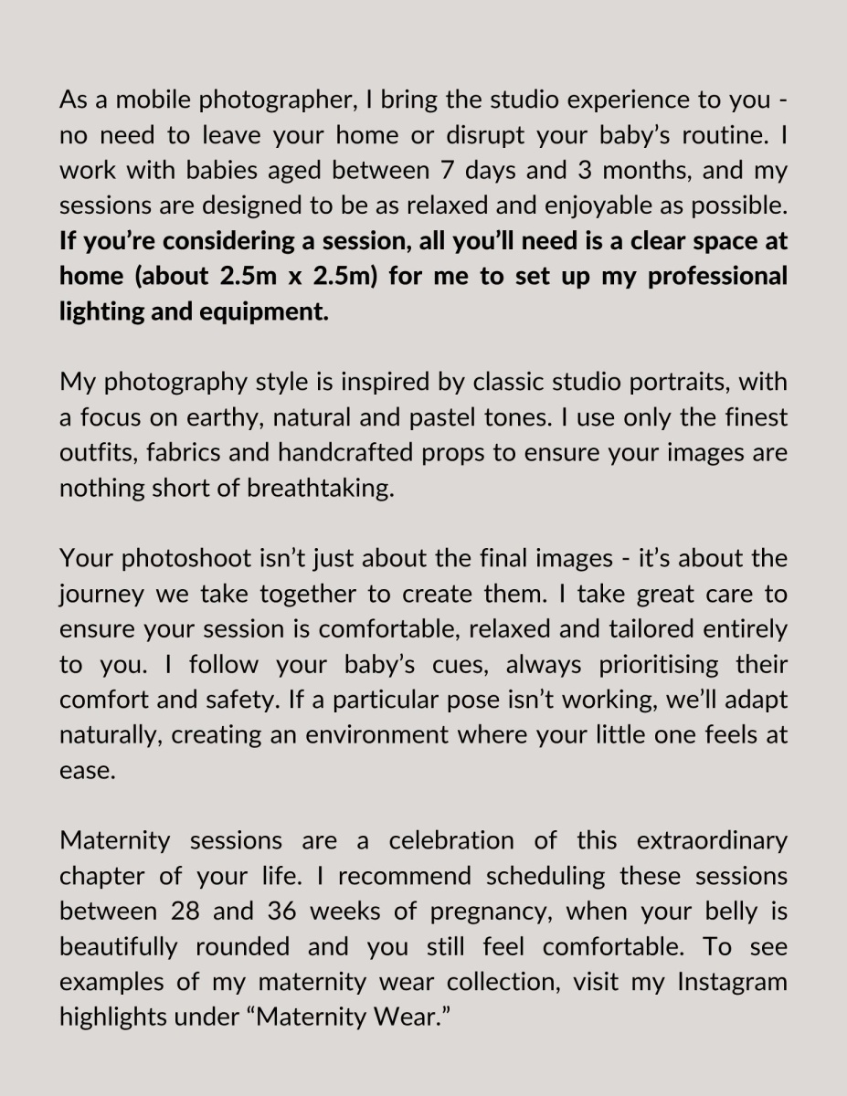 As a professional mobile photographer in Essex I offer my newborn and maternity photoshoots across a wide area including but not limited to: Witham, Tiptree, Maldon, Chelmsford, Brentwood, Billericay, Coggeshall, Braintree, Colchester, Wickford, Halstead, Hatfield Peverel & more...