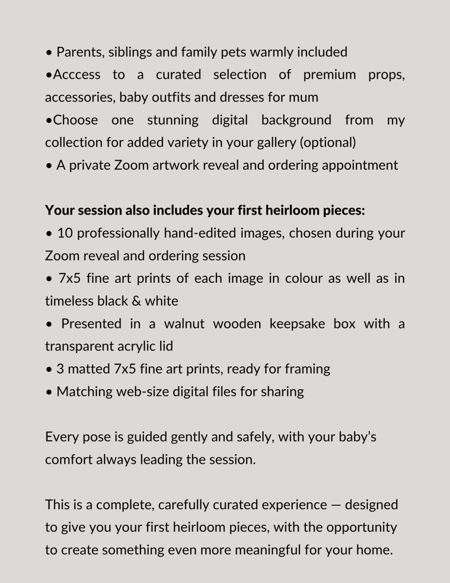 I am excited to introduce my Fine Art Newborn Collection, designed to capture the precious first moments of your baby's life with timeless elegance and artistry.